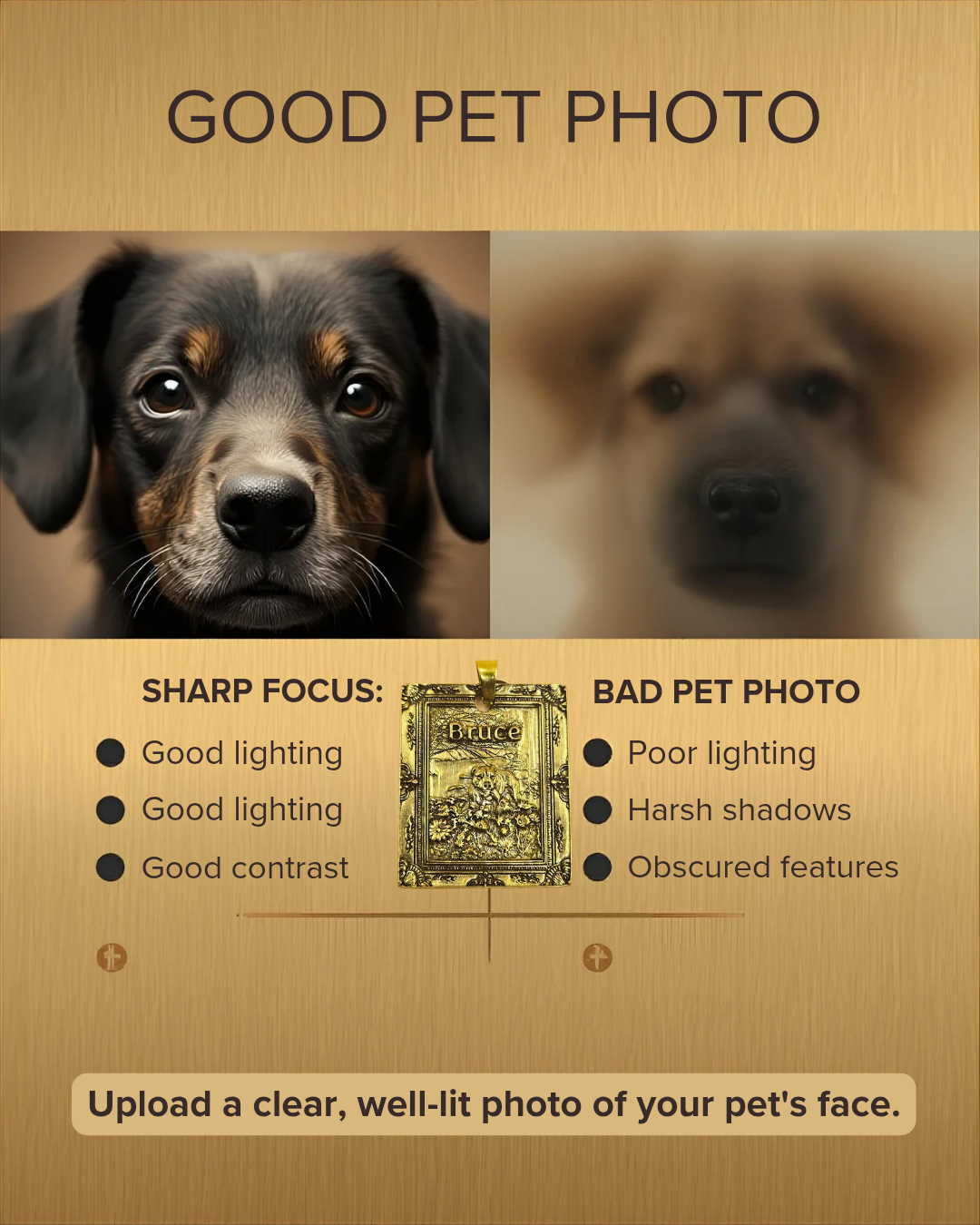 This exquisite X-Small Oval Pendant (20mm diameter × 2mm thick) is meticulously crafted from solid brass and transformed through precision 3D laser engraving into a breathtaking, lifelike portrait of your beloved pet. Upload your dog's photo, and we custom-create a one-of-a-kind masterpiece that captures every whisker and sparkle in their eyes.