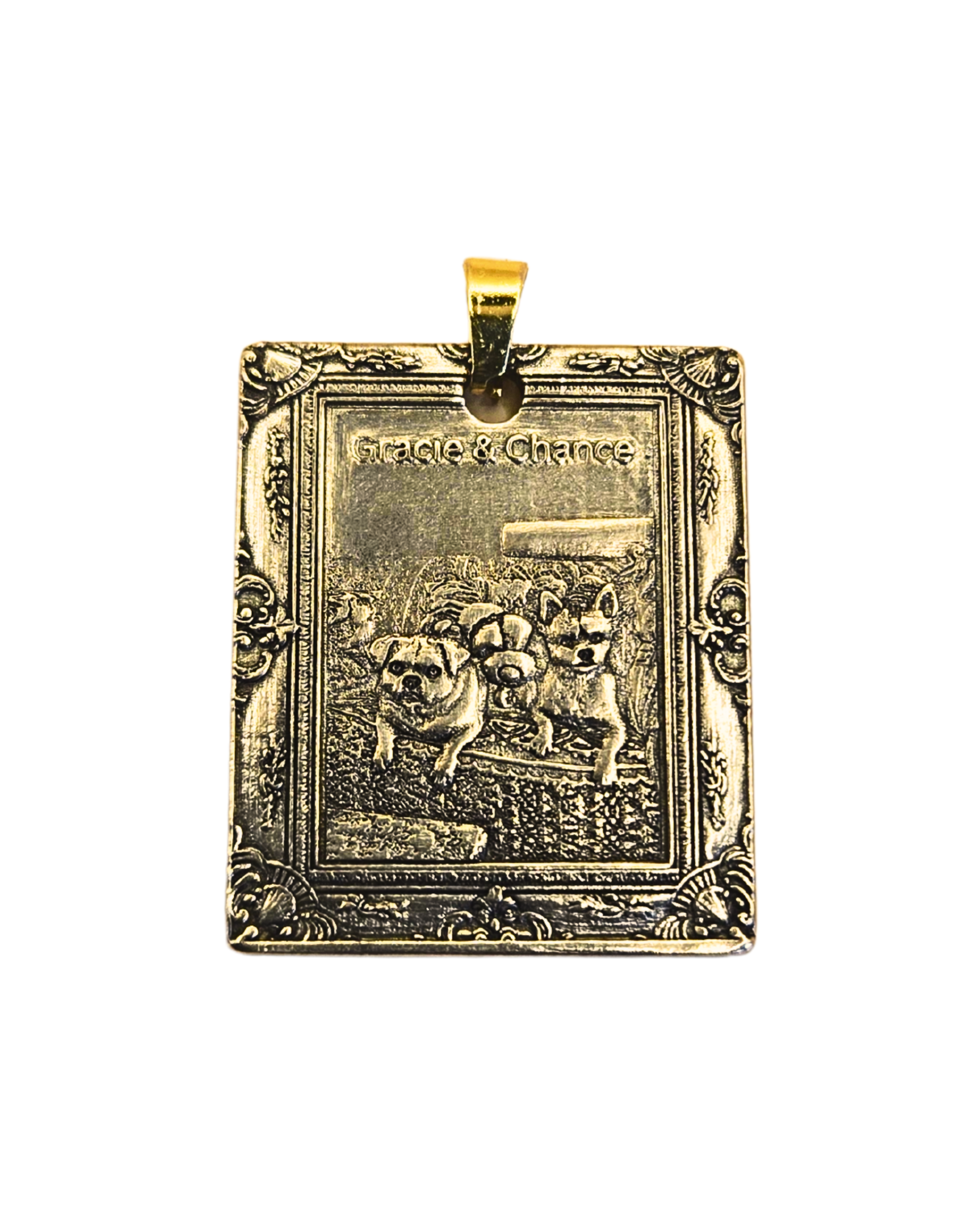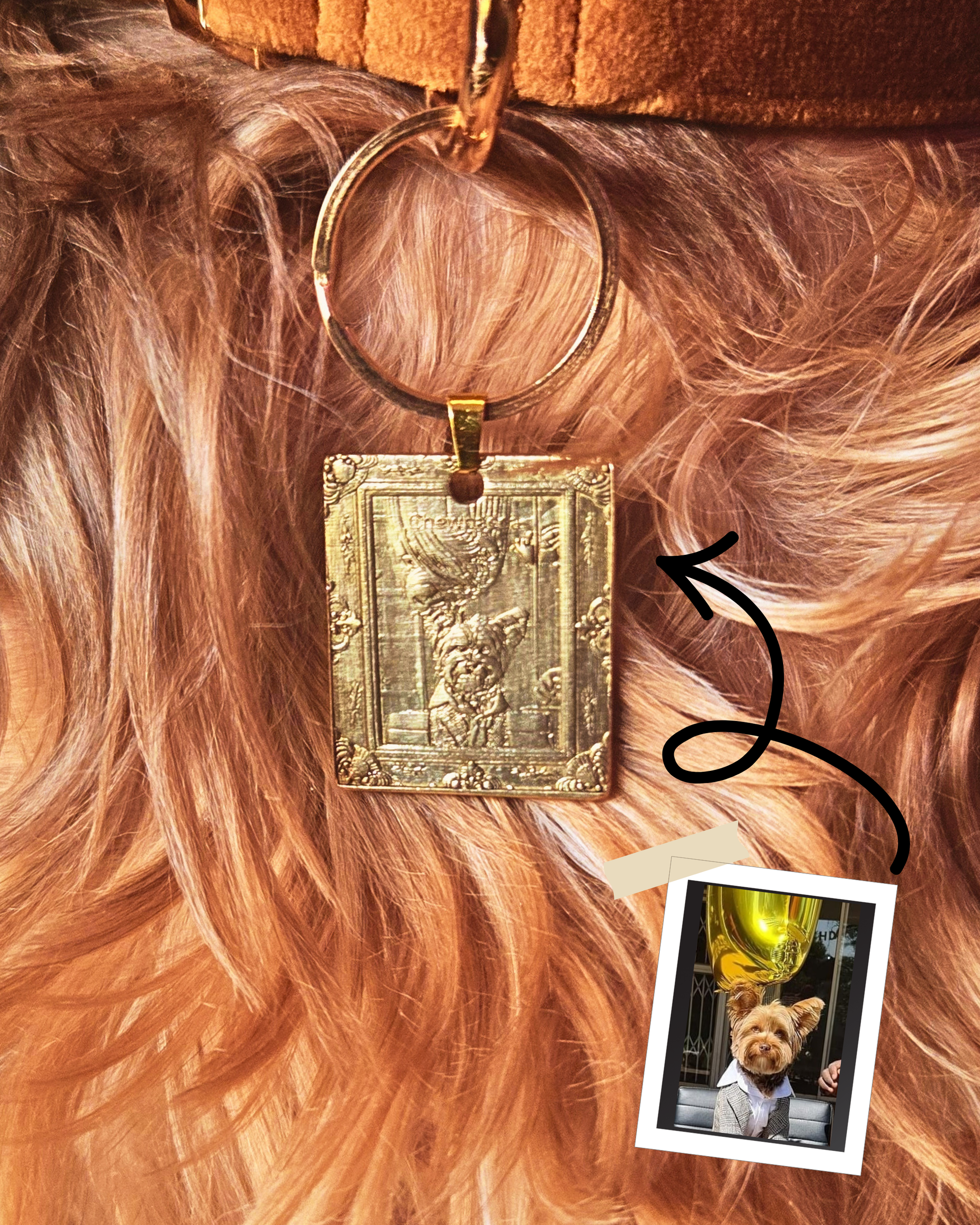 Elevate your pet's identity with The Portrait Collection—a stunning evolution in personalized pet tags, where cherished memories are etched into heirloom-quality brass.